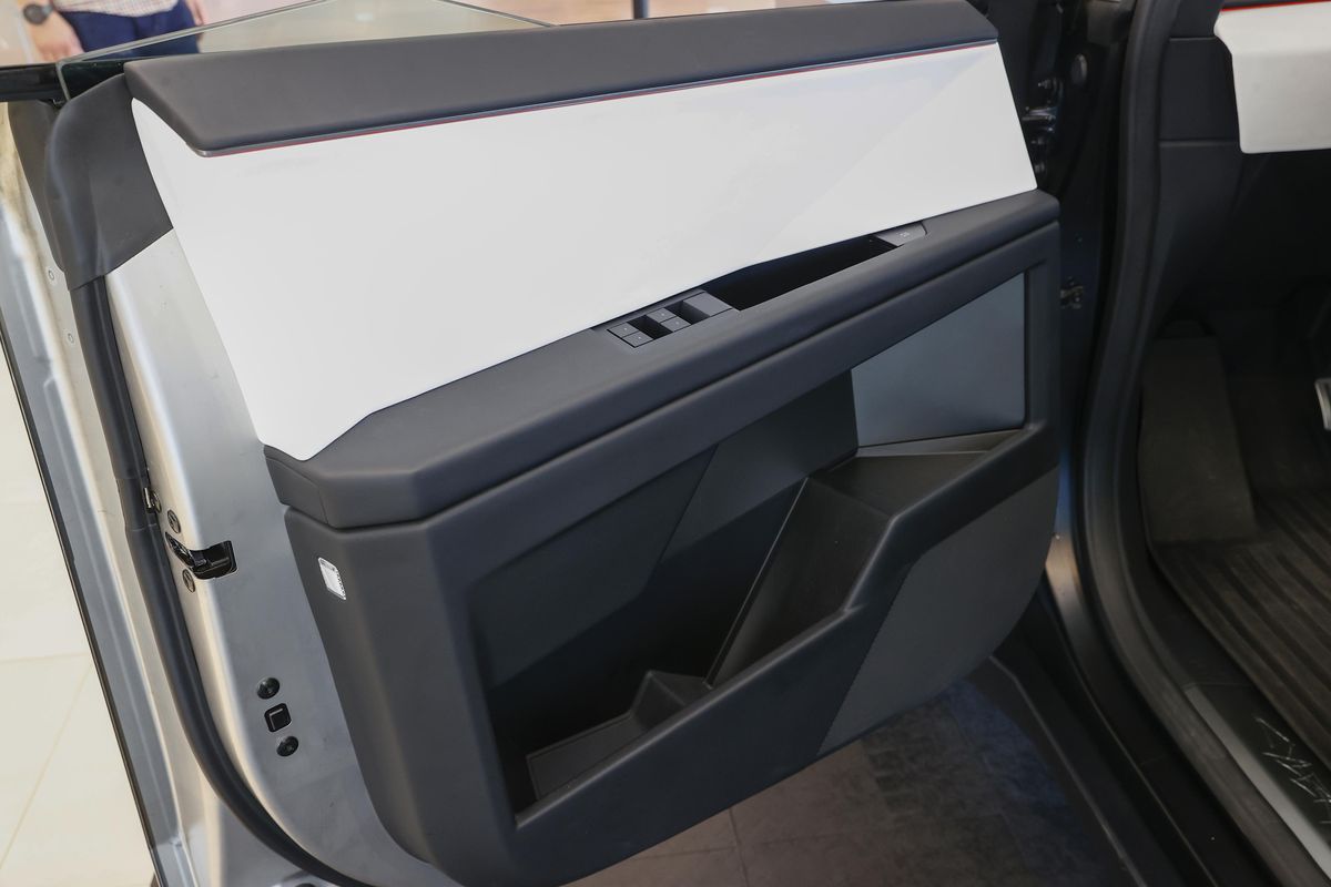 Vnitřní kliky Tesly Cybertruck jsou řešeny minimalisticky a jejich elektrické otvírání spoléhá na 12V baterii.