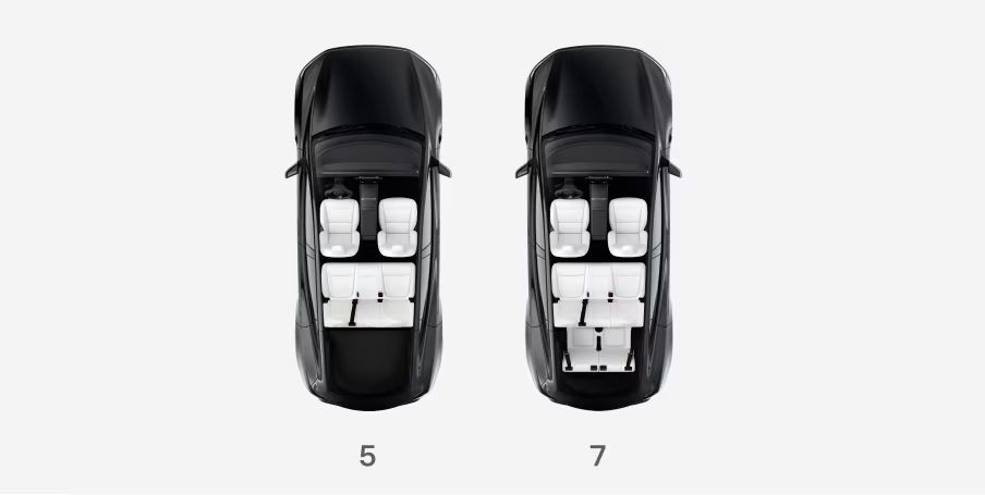 Srovnání pětimístné a sedmimístné konfigurace vozu Tesla Model Y