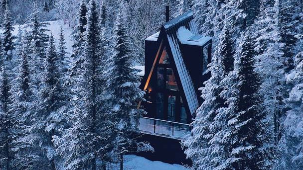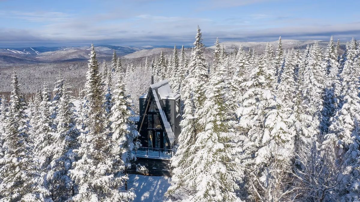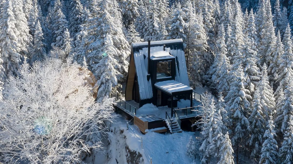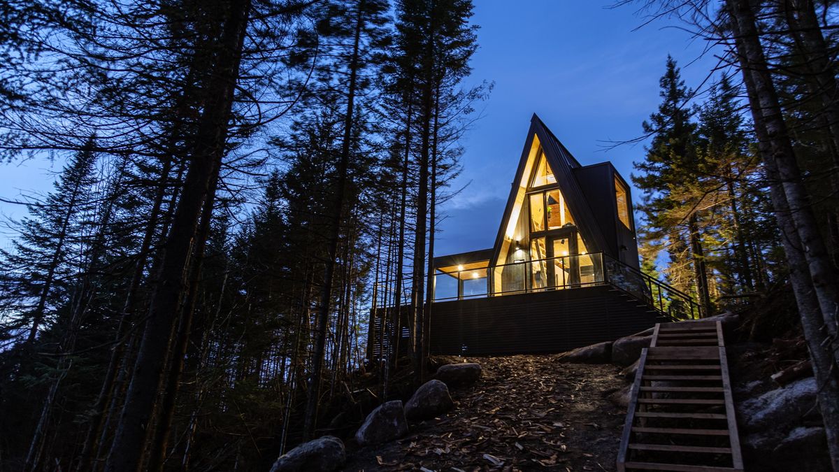 Chata Aura byla postavena v roce 2020 nedaleko Québecu u jezera Lac Beauport. Svým tvarem připomíná horský smrk – jednoduchý dřevěný trojúhelník, který dokonale zapadá do okolního lesa. Fasáda z opalovaného dřeva splývá v létě se stíny lesa, zatímco v zimě kontrastuje s bílou sněhovou peřinou.