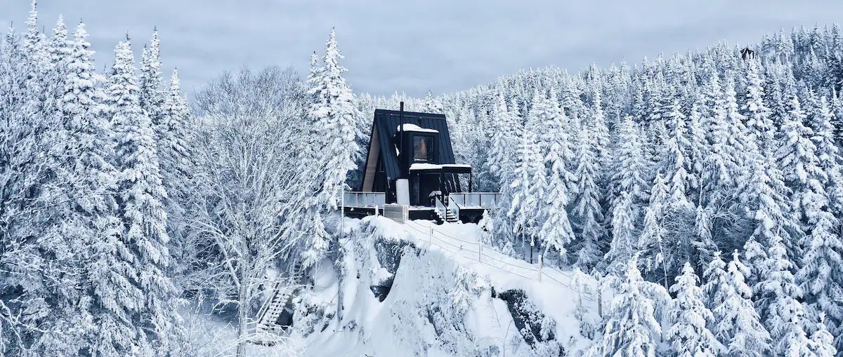 Název chaty nevznikl náhodou. Stavba stojí vysoko v horách, kde je minimální světelné znečištění. Z ložnic můžete pozorovat hvězdnou oblohu i polární záři, která se v této části Québecu občas ukáže.