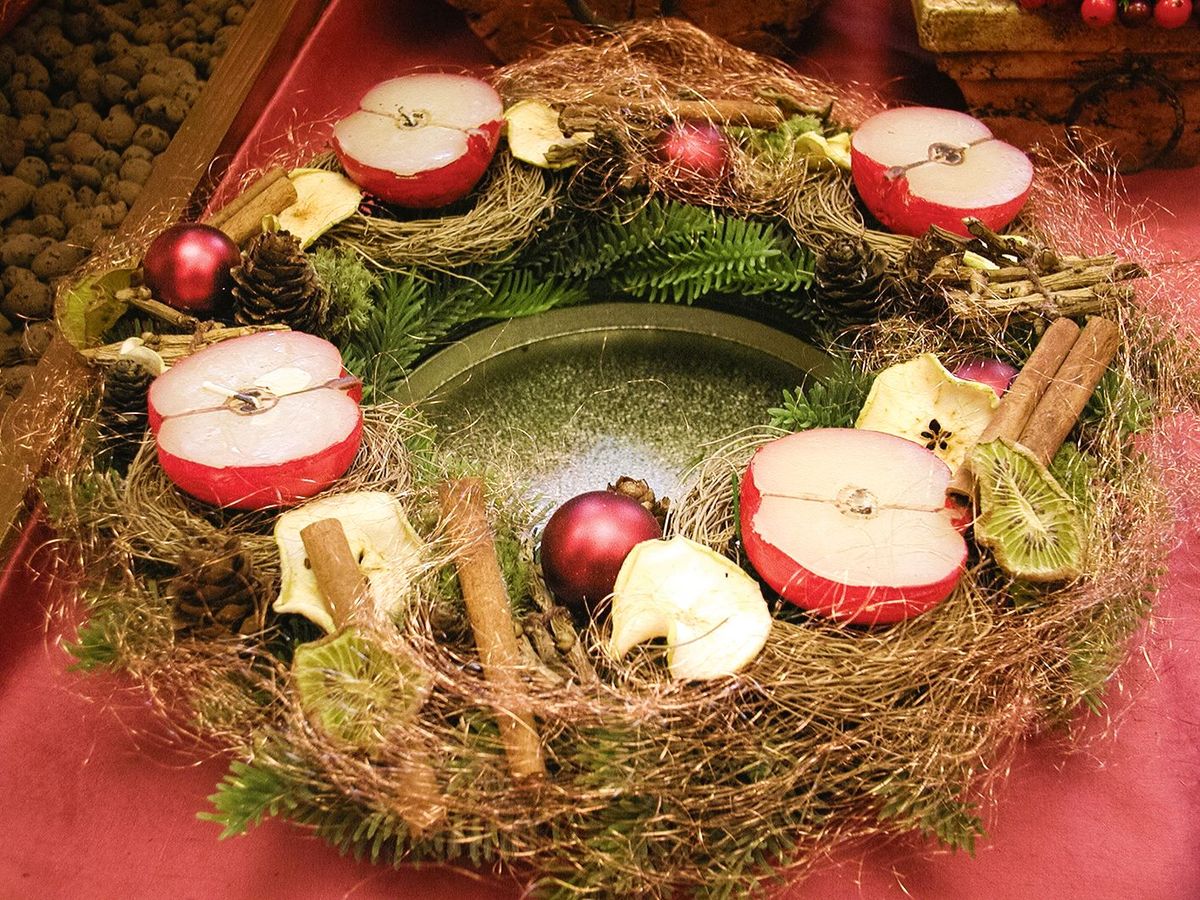 Jak si ale takový adventní věnec vyrobit? Je to vlastně jednoduché. Tradičně bývá základem věnce slaměný kruh, ale nemáte-li po ruce slámu, můžete do kruhu vytvarovat třeba seno, staré novin nebo jiný vhodný materiál. Kruh pak důkladně zpevníte drátkem, provázkem či stuhou – tak, že ho po celém obvodu nahusto omotáte. Když jste kruh vytvarovali a zpevnili, pokryjte ho střechovitě větvičkami z jehličnanů, jež krásně provoní dům. Použít ale můžete třeba i mech. Jak krásně to vypadá, uvidíte na fotografiích v galerii níže.