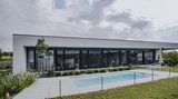 Dům má velká bezrámová okna, která nabízejí skvělý výhled do krajiny bez rušivých prvků, a ještě pouští do interiéru dostatek denního světla.