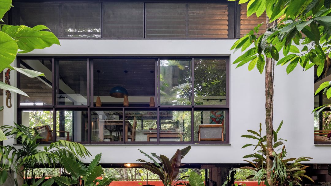 To, čím stavba na první pohled zaujme i člověka ze střední Evropy, je způsob, jakým respektuje přirozený svah i hustý amazonský prales, do kterého je zasazena. Hlavní obytný objem se nad terénem částečně vznáší, neboť je nesen konzolami vysunutými vodorovně ze svahu směrem k lesu. Toto řešení minimálně ovlivňuje okolní přírodu a přiznejme si – především je výrazně levnější, než kdyby byla stavba zahloubena do svahu. Celek navíc působí vzdušným, odlehčeným dojmem, což betonovým objektům vždycky svědčí.