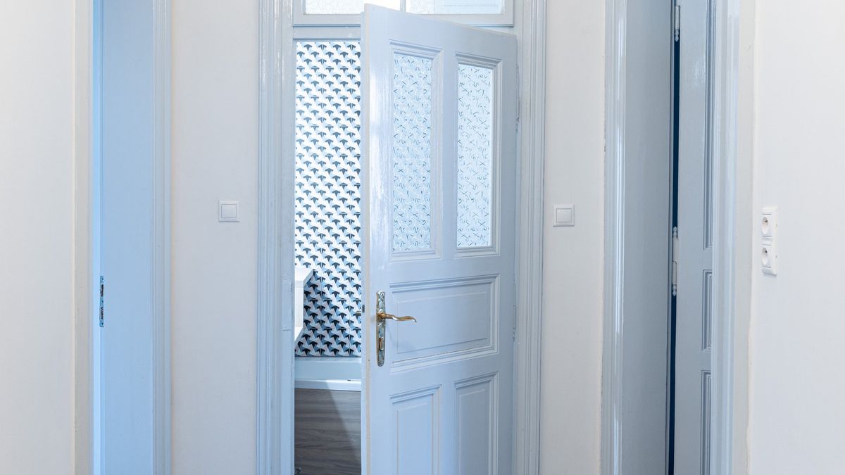 Renovované dveře krášlí interiér s vysokými stropy