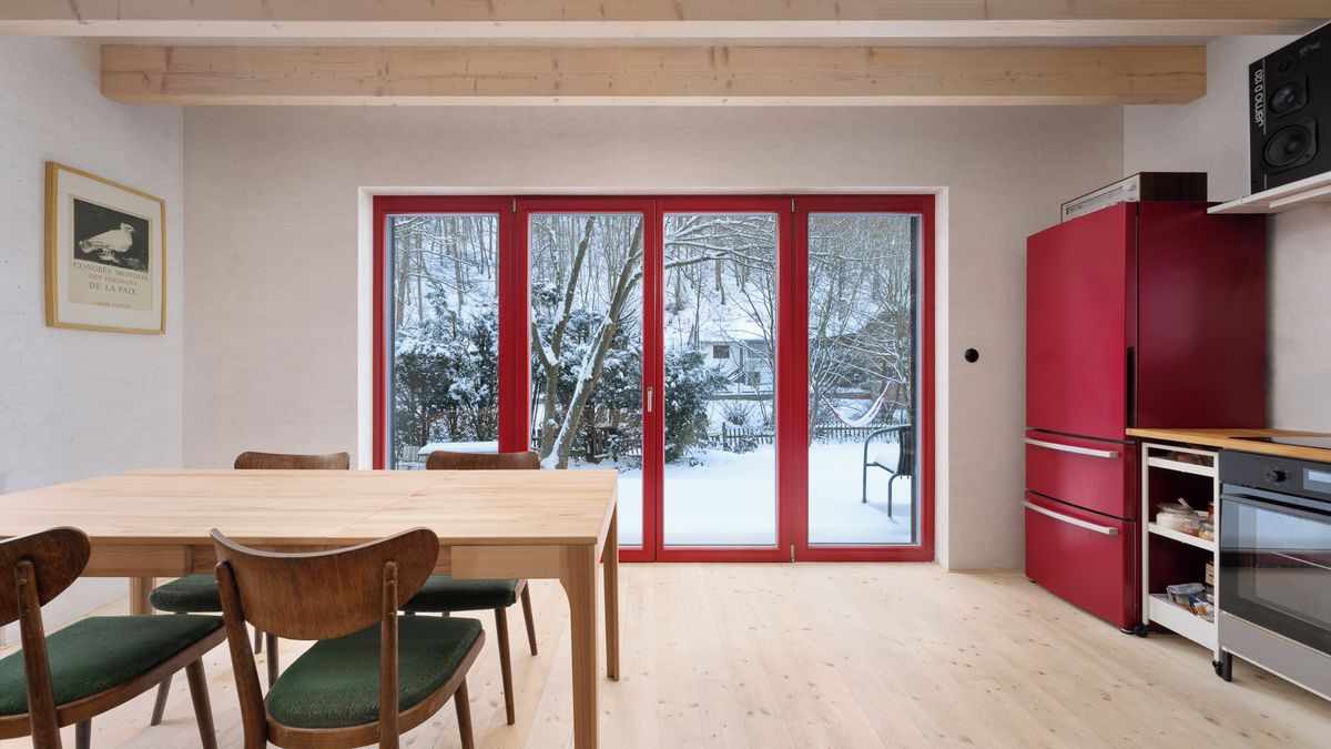 Architekti novou chatu navrhli tak, aby ji majitelé mohli užívat celoročně a vychutnali si v ní všechna roční období – od prvních sněženek v zahradě přes letní vlahý večer pod korunou stromu po podzimní posezení u ohniště. A v zimě, když všechno pokryje první sníh, člověku se nechce od rozpáleného krbu.