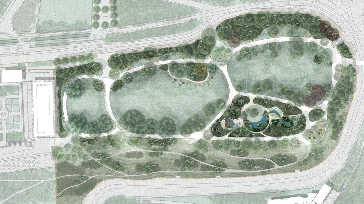 Ve vítězném návrhu krajinářští architekti Martina Kameníková a Radek Prokeš ze studia Arkytek společně s Matoušem Jebavým rozvíjejí původní podobu parku od Františka Josefa Thomayera z počátku 19. století, ale nebáli se ani inovací.