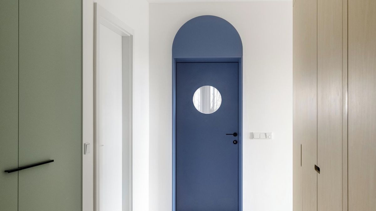 Již zmíněná bělená překližka, oblouk jako opakující se geometrický tvar, modré rastrované komody, betonové stěrky v hlavních místnostech, barevné provedení chodby a toaleta kompletně celá v cihlovém odstínu: to jsou detaily, které prostě nepřehlédnete. Jsou přitom decentní, elegantní, jemné a rozhodně na sebe nestrhávají „dráždivou“ pozornost.