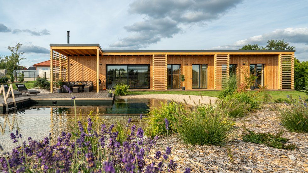 Nosnou konstrukci stavby tvoří masivní dřevěné panely. Vnější izolace je z dřevovlákna, interiér kombinuje dřevovláknitou izolaci a sádrokarton. Dům zdobí dřevěný obklad ze sibiřského modřínu, který, spolu s konstrukčním systémem dřevostaveb ze šroubovaných masivních dřevěných panelů, zajišťuje moderní vzhled i parotěsnost stavby.