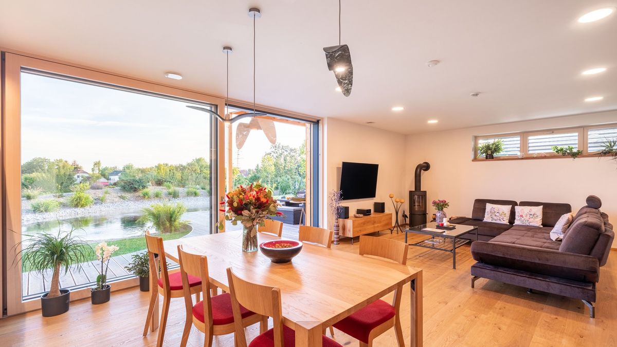 Dispozice domu odráží potřeby rodiny s odrostlými dětmi - dětské pokoje tak mohou sloužit i hostům. Zvláštní pozornost byla věnována potřebám paní majitelky, která pracuje z domova. Původní koncept zapuštěné terasy byl přepracován a terasa byla přesunuta do exteriéru, což zlepšilo energetickou účinnost a využití prostoru.