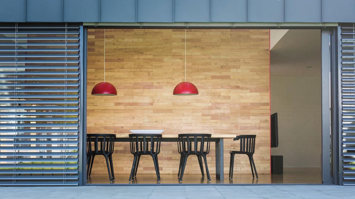 Dům je nápaditý a „chová se jako chameleon“. Mění se, vypadá jinak zvenčí a jinak uvnitř. Exteriér působí velmi nenápadně – nabízí čisté linky, jednoduché tvary a střídmost v užití materiálů. Interiér je naopak extravagantní, barevný a velmi osobitý. Prostoru dodává energii červená barva, která se v ploše i v detailech opakuje v celém domě. Materiálově a esteticky příjemně překvapí i tmavý čedič na podlaze v předsíni a sytě červené schody do horního patra.