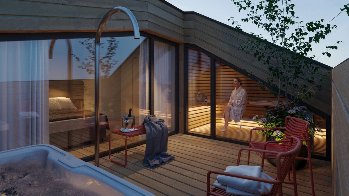 Panoramatická sauna s výhledem do přírody. (vizualizace)