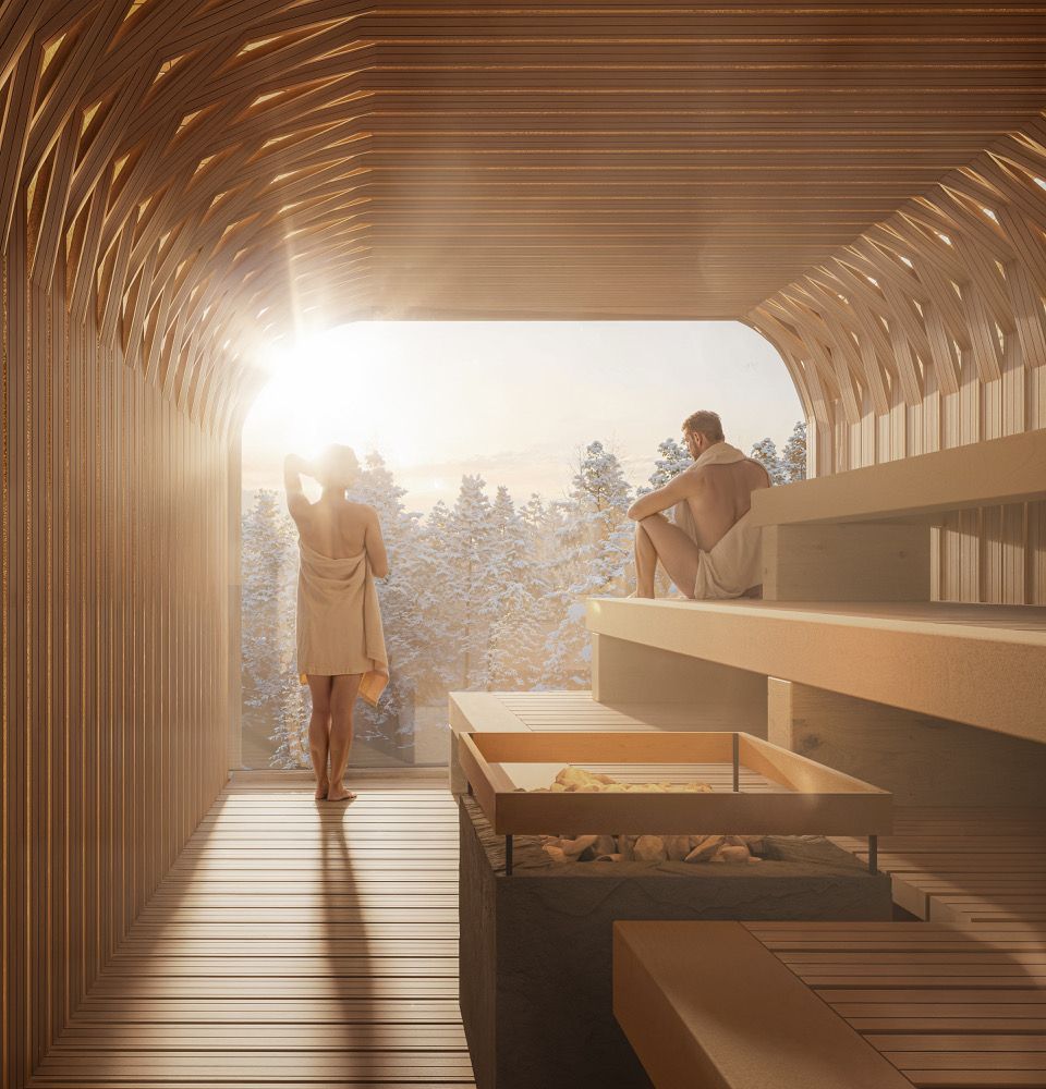 Architekti rovněž navrhnou vzhled wellness prostor. Každou z částí pojali v trochu jiném stylu, přesto budou základní rysy všem společné. Horské lázně mají být například ve stylu indické ájurvédy. Ve svých návrzích pracují se dřevem, kameny a se sklem, přičemž všechny materiály se snaží prezentovat hlavně v jejich surové formě. A tak zatímco jeden recepční pult má být obložený masivním kusem kamene, jiný bude vyrobený z veliké klády.