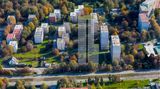 Interiér věží má být v kontrastu s jejich vzhledem a má jim dodat detail a dekor. „Každý prostor má jinou atmosféru a barevnost. Například v lobby kombinujeme beton, terrazzo a tmavě mořené dřevo s mramorem,“ popisuje architekt Martin Šenberger z ateliéru Mar.s architects.
