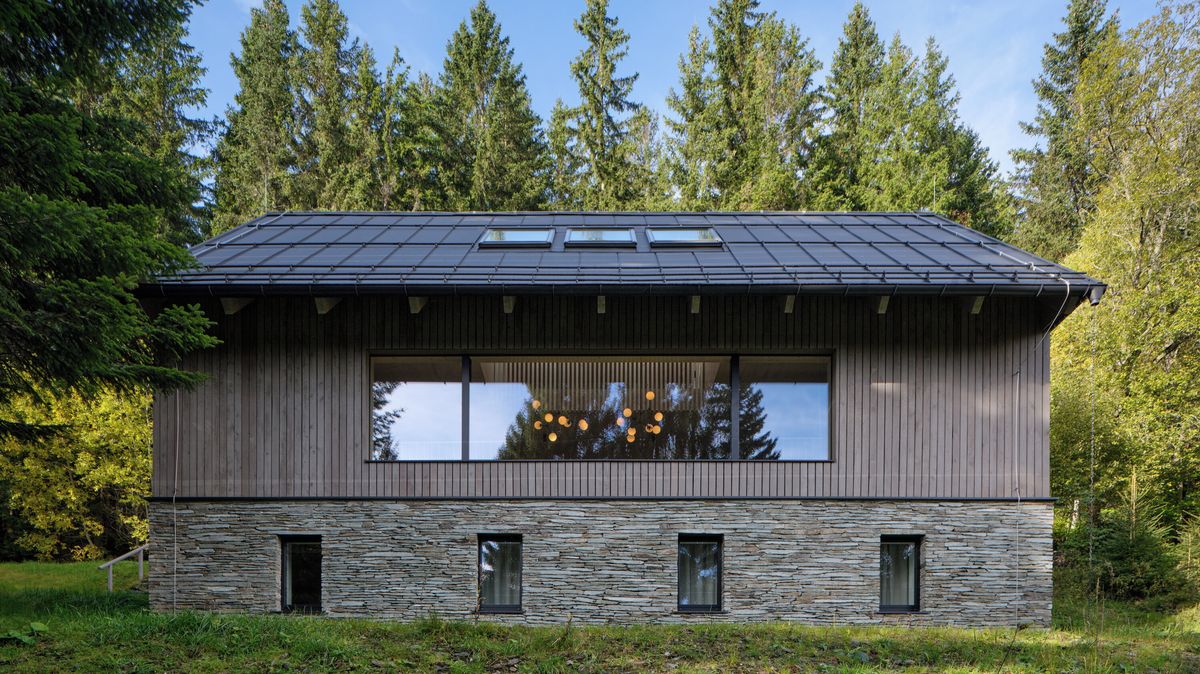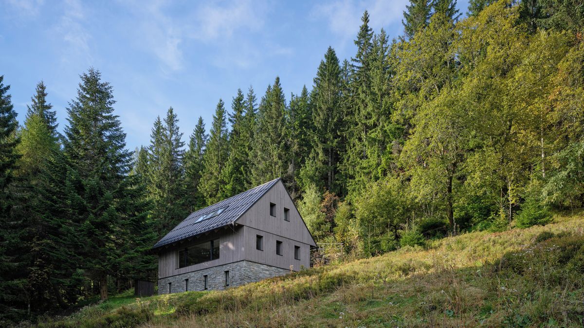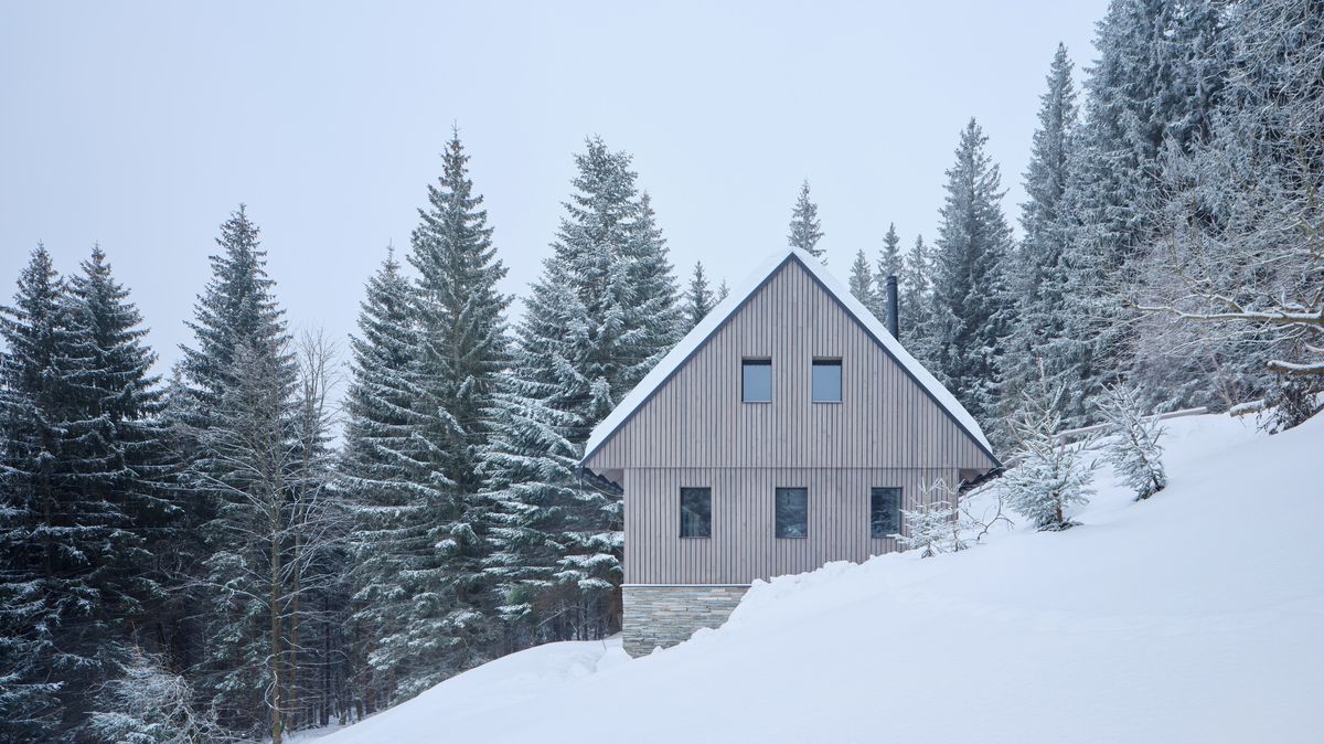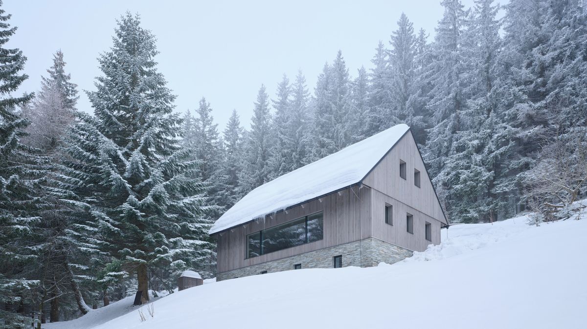 Domy v Krkonošském národním parku musejí tvarem, velikostí i materiálem odpovídat místním regulím, aby v horském prostředí nepůsobily rušivě. Důležité je zůstat u klasických štítů, sedlové střechy, dřevěného obložení i menších oken na čelní straně. Tak také vypadá horská chalupa na Kukačkách. Na její boční fasádě ale mohla vzniknout velká prosklená plocha, která dovnitř vnáší dostatek světla i za sychravých podzimních a zimních dnů.