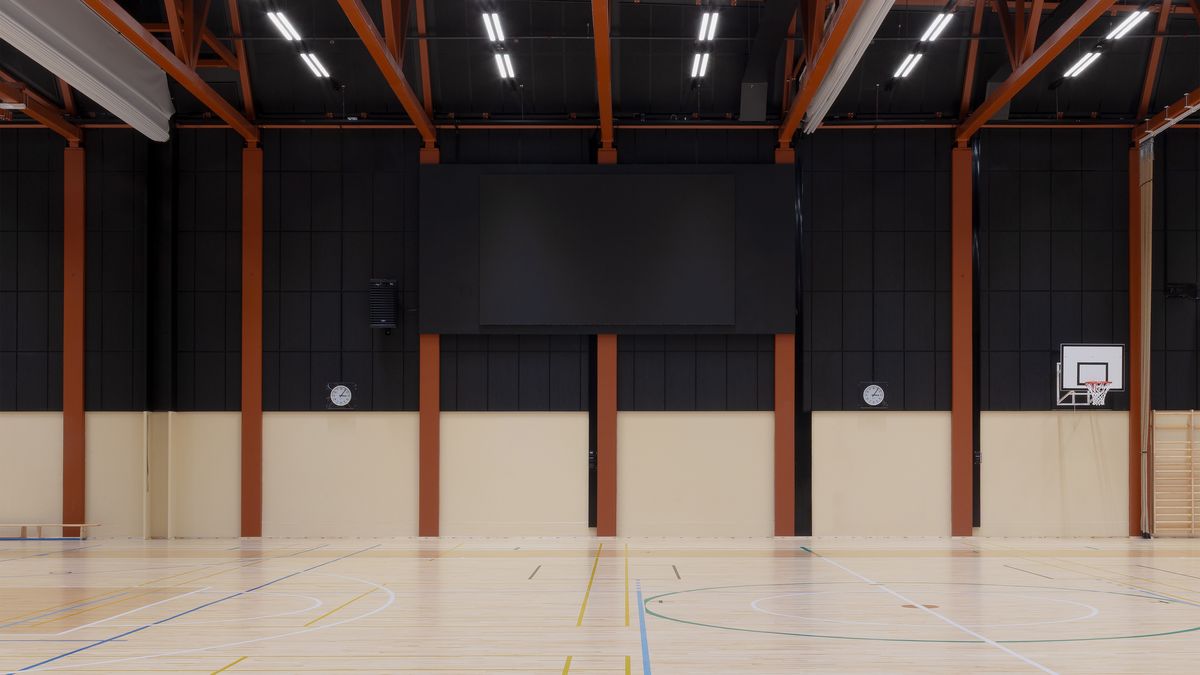 Budova, kterou navrhlo architektonické studio Nervin architecture sídlící v Helsinkách, se táhne téměř přes celou šířku pozemku a rozděluje oblast na dvě části: městskou občanskou část na severu a zelenou, parkovou zónu s hřišti a sportovišti na jihu.