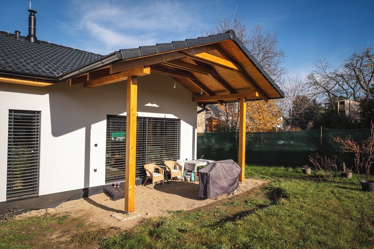 Jediné, na čem jsem trvala, byl přesah střechy. Původně nám to nebylo doporučeno kvůli vyšší ceně, ale když jsem si zjišťovala ceny hliníkových pergol, tak se ceny pohybovaly stejně, ne-li dráž.