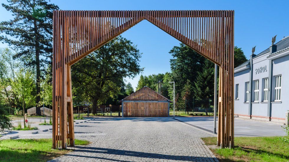 Sokolovna, která vévodí celému prostoru, byla ponechána ve stávající podobě. Původní objekt Severočeské vodárenské společnosti byl zakryt dřevěným pláštěm, jehož skládací stěny se dají otevřít a využít jako klubovna nebo šatna pro sportovce.