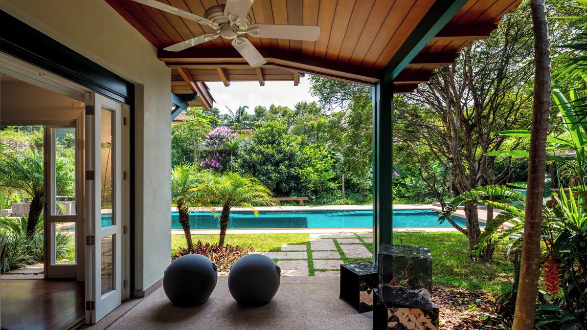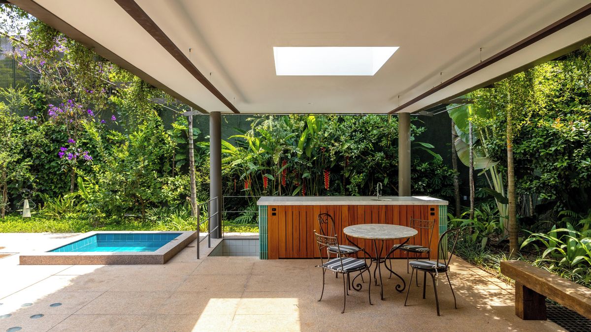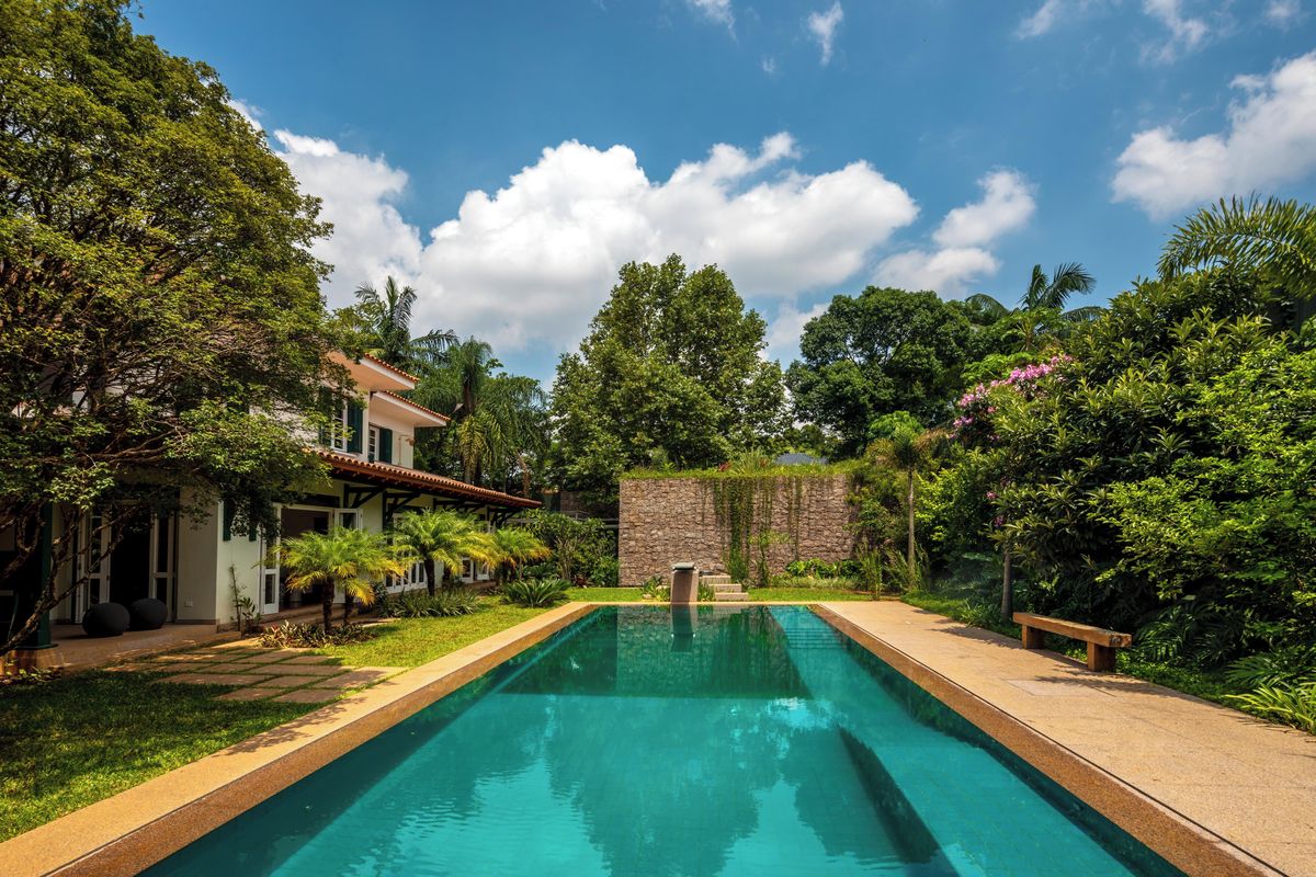 Bílý dům s tmavě zelenými detaily a prejzovou střechou, postavený v roce 1934 ve čtvrti Jardim Europa, byl od začátku plánován tak, aby dobře sloužil potřebám rodinného života.