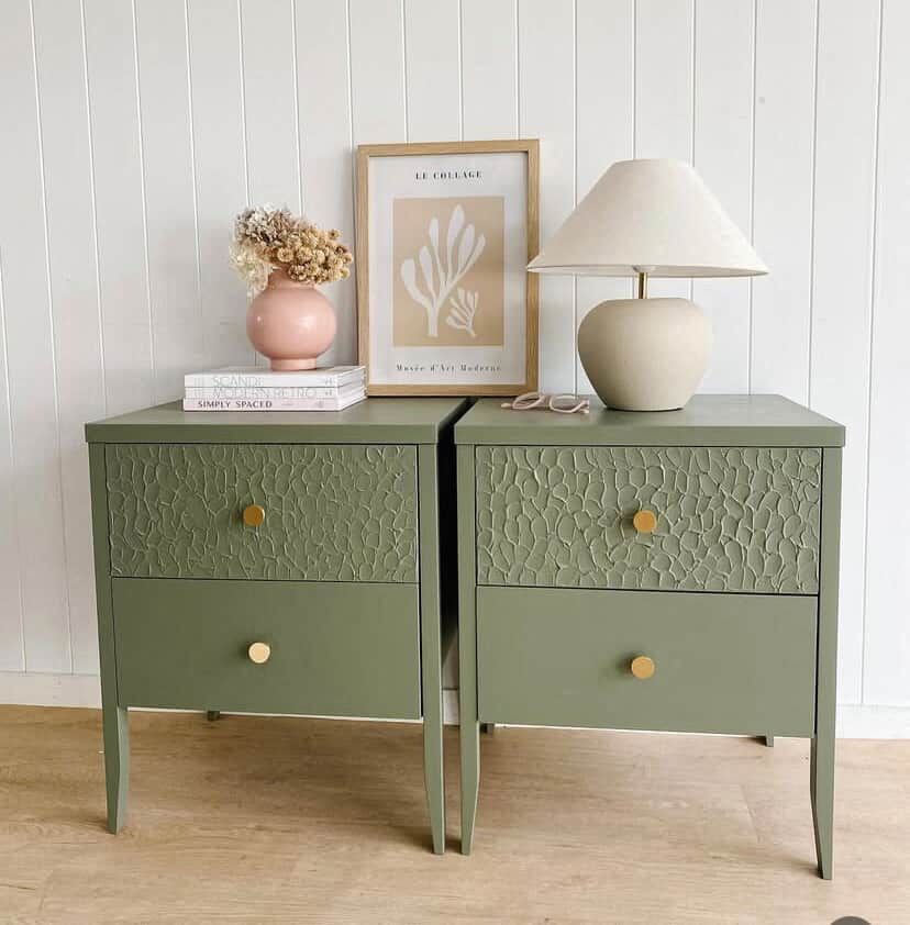 Pro tyto noční stolky zvolila mátovou barvu, vyměnila úchytky a zcela tak změnila jejich vzhled.