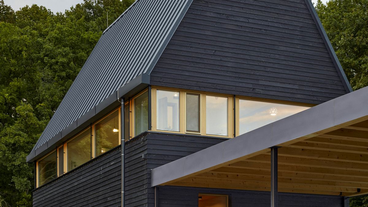 Zmíněné dřevěné obklady v černé barvě vytvářejí kontrast ke světle laděnému interiéru v jemných, světlých odstínech. I uvnitř domu hraje mezi materiály hlavní roli dřevo. Velkými okny (zejména to ve štítové straně) a otevřeným obytným prostorem je interiér úzce propojený se zahradou i okolní přírodou.