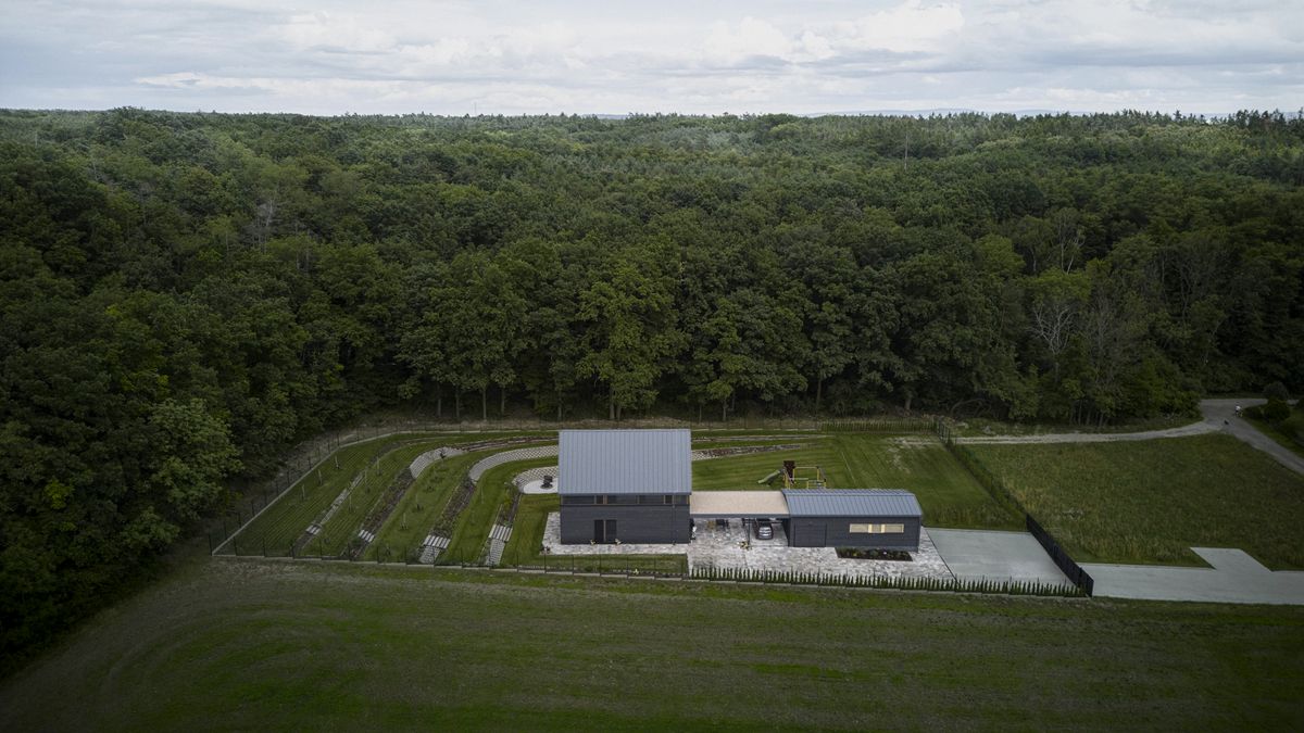 Elegantní a střídmá novostavba vznikla podle návrhu architektů Víta Svobody a Pavla Nového z ateliéru 0,5 Studio. Obě stavby mají jednoduchou formu vycházející z tradičního tvarosloví venkovských rodinných domů. Díky černému dřevěnému obložení velmi pěkně zapadají do okolní krajiny, již tvoří rozhraní pole a dubového lesa.