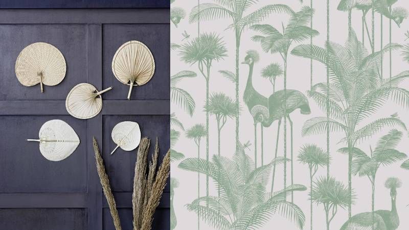 Stany můžete zpestřit i vějíři z palmových listů a klasickými tapetami s tropickým motivem.