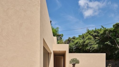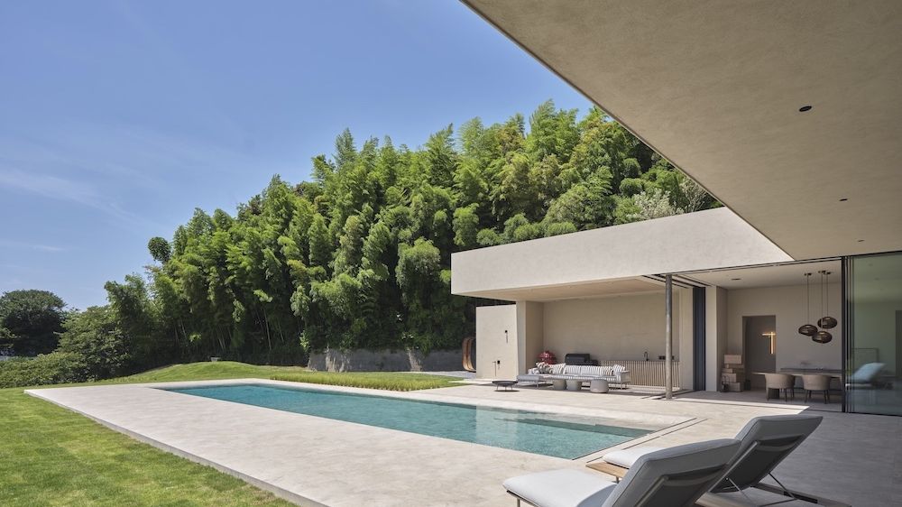 Pozemek se nachází na mírně svažitém terénu a majitelé jsou obklopeni vzácnou přírodní scenérií. Na jižní části se rozprostírá mandarinkový sad, na západě zase roste hustý bambusový les. To vše hrálo při výběru pozice domu svou roli. V dáli je na některých místech možné dohlédnout až k oceánu. Jedná se tedy o oázu klidu, umístěnou na samém okraji obytné zóny.