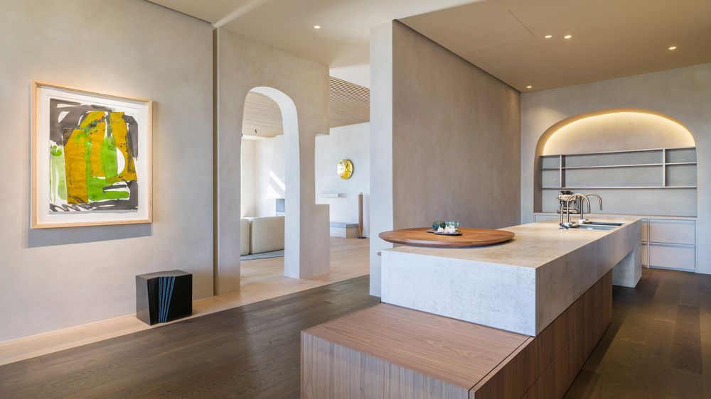 Echo Villa se rozkládá na ploše neuvěřitelných 990 m2. Základním prvkem interiéru jsou organicky vedené linie, které se propisují do nábytku, příček, stropních přechodů i zábradlí. Přestože jde o velmi luxusní dům, nepůsobí chladně ani okázale. Zaoblené tvary, minerální omítky a přírodní teakové dřevo vytvářejí klidné, teplé a přívětivé prostředí.