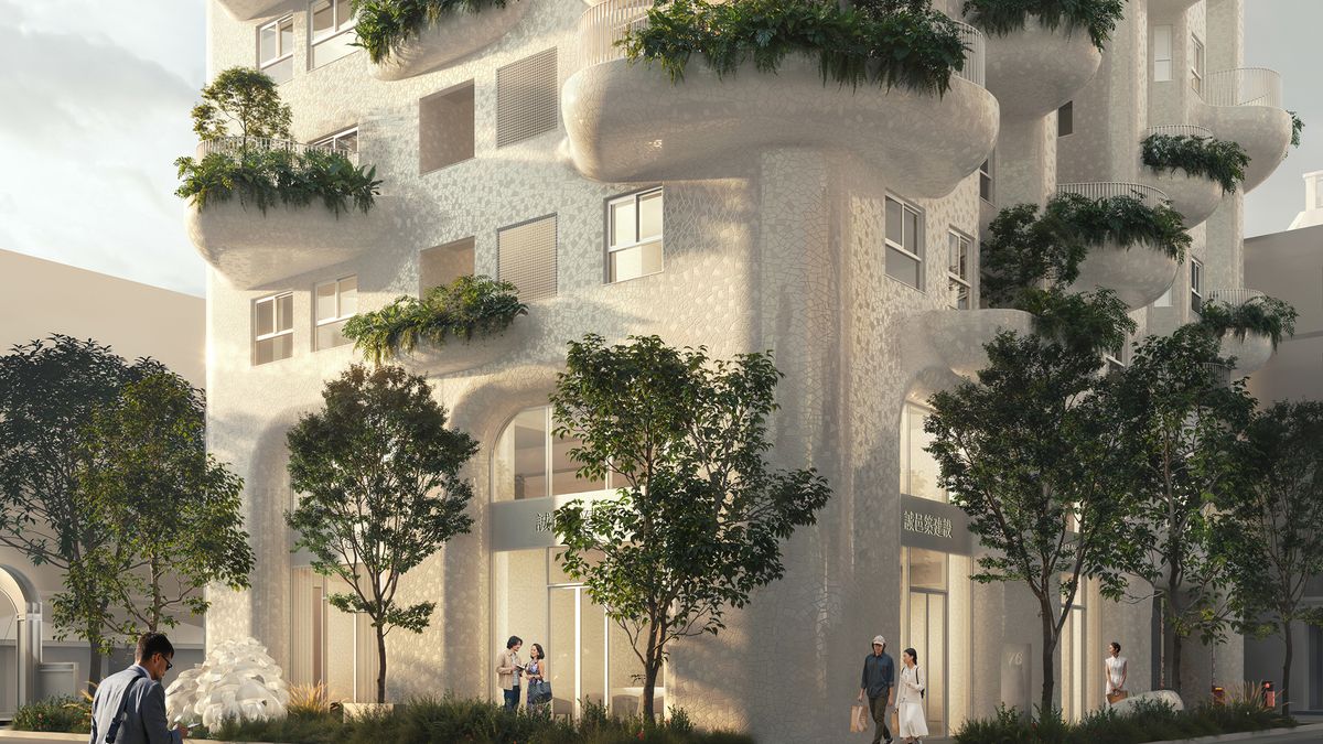 Právě organicky zaoblené tvary mají vnést nový styl do jinak poměrně hranaté zástavby v obchodní čtvrti a zároveň navodí dojem, jako by stavbu vytvořila sama příroda.