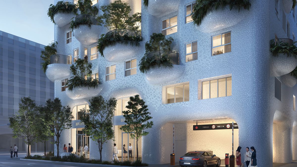 Aby architekti zdůraznili odhodlání vrátit přírodu do města, doplnili zeleň po celé budově organickými křivkami. Díky mozaice malých nepravidelných tvarů je možné dlaždice přizpůsobit každému záhybu. Inspiraci nabízí technika známá z díla katalánského architekta Antoniho Gaudího. Používají se přitom různé odstíny bílé barvy, větší kousky se umisťují na rovné plochy a menší dlaždice dodávají hladký povrch křivkám. Díky tomu bude fasáda nejen dobře vypadat, ale bude také jednoduchá na údržbu.