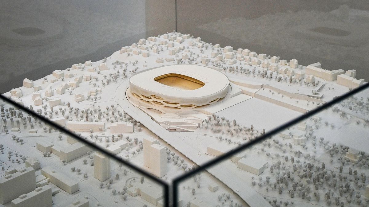 Model vítězného návrhu na výstavě. Takto bude vypadat nový fotbalový stadion pro Baník Ostrava.
