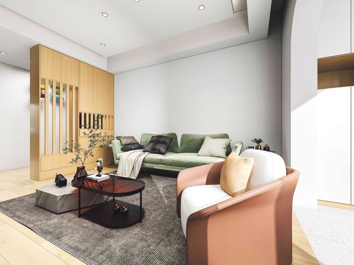 Nenásilné dělení podpoří intenzita a typy osvětlení. Například svit stojací či stolní lampy u křesla ohraničí čtecí koutek, záře závěsného lustru nad stolem zase jídelní část. Chytré LED žárovky s označením RGB navíc umožňují přednastavit i střídání různých barev.