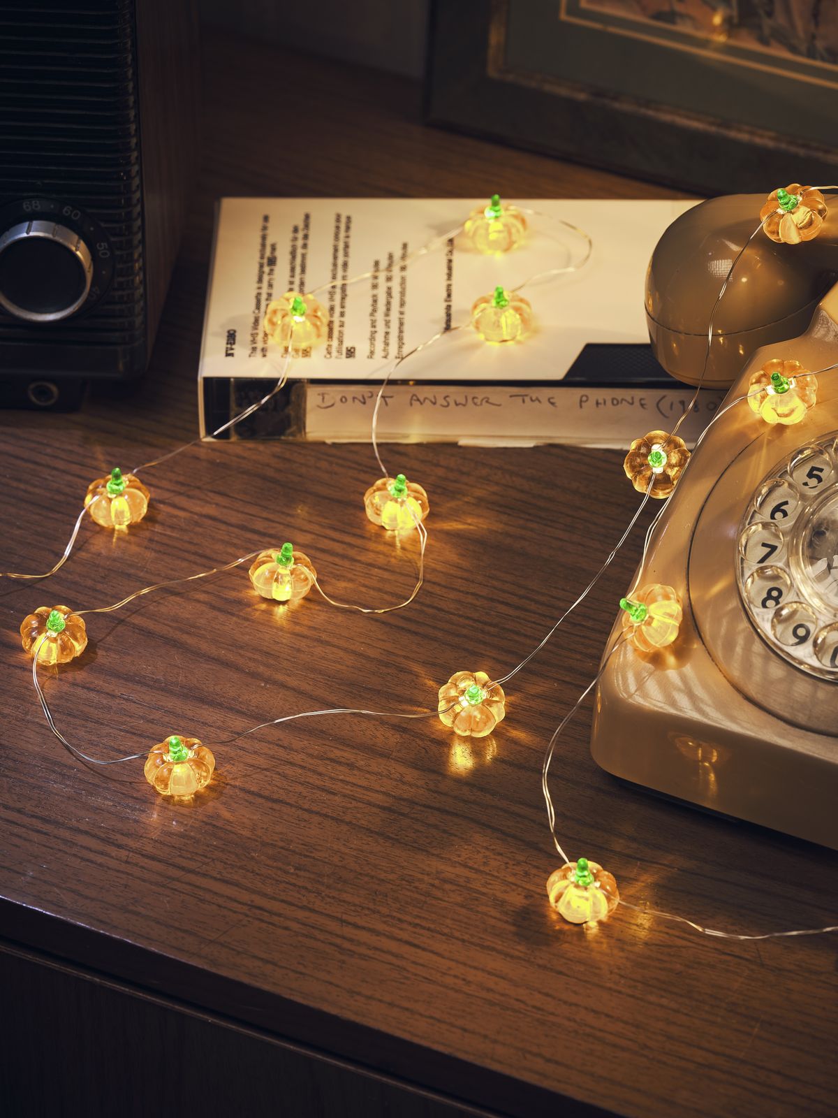 Na oslavy v podzimním období užijete světelné řetězy ve tvaru dýní, které zpestří celé stěny, zákoutí nebo stoly. Ty jsou hezkou připomínkou Halloweenu, ale zároveň jsou svým provedením celkem decentní dekorací.