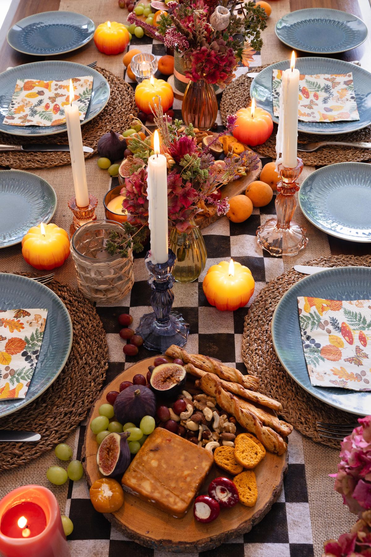 Pokud hledáte jen drobné dekorace, pak zvolte svíčky ve tvaru dýní. Buď ty skutečné, nebo umělé. Na jídelní tabuli budou vypadat dobře v kombinaci s podzimními květinami, trávami a zezlátlým listím. Vše laďte do teplých podzimních barev.