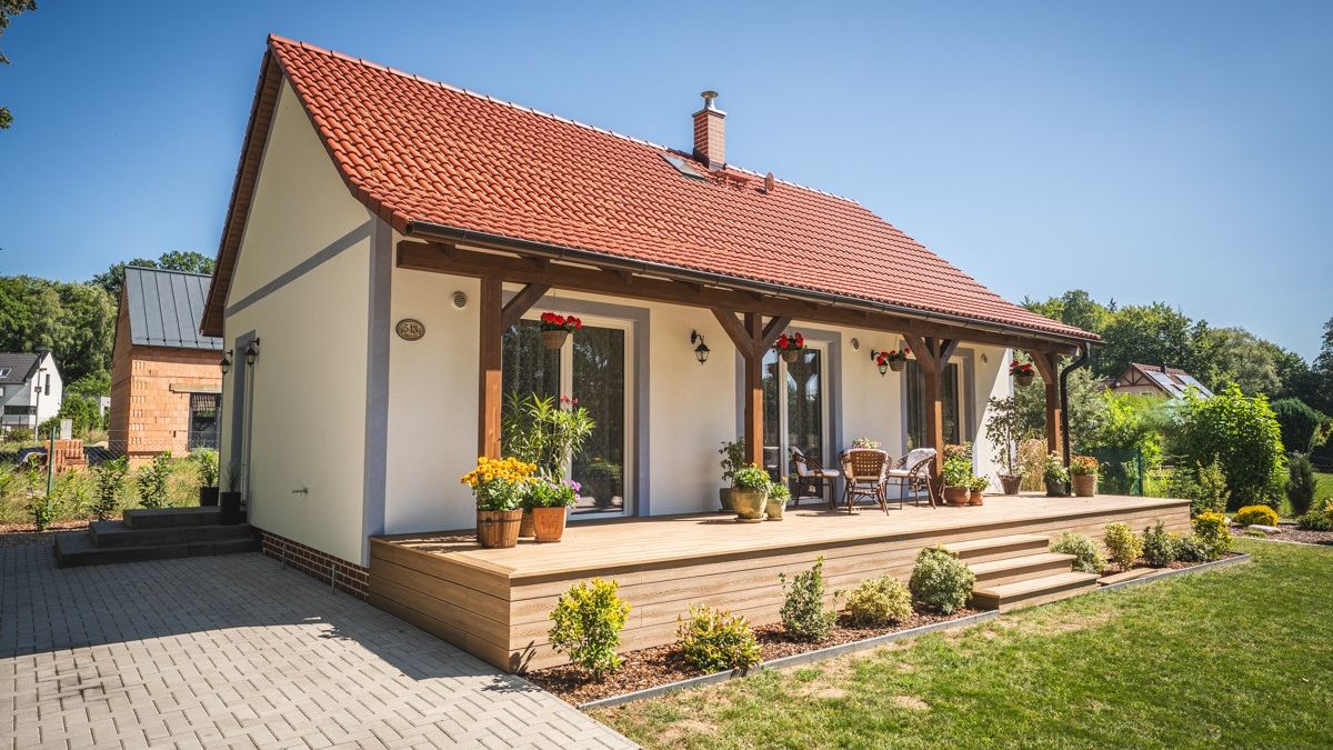 Gabriela: Mobilheim byl maličký, měl asi 4 metry na šířku a asi 11 metrů na délku. Exteriér byl obložený dřevem jako roubenka, byla tam malá ložnice a u ní krásná terasa. V takovém duchu jsme chtěli i náš dům a myslím si, že se to povedlo. V mobilheimu bylo vlhko, stromy kolem nás rostly pořád do výšky a za těch 10 let začaly stínit. Navíc to byl starý mobilheim, stál nás tehdy asi 200 000 Kč.