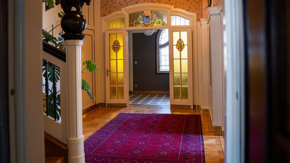 V místnostech Grossmannovy vily již došlo k položení koberců. Je mezi nimi také mimořádně vzácný koberec z íránského města Kášán, pákistánský koberec Jaldar z ovčí vlny, protkaný hedvábnou nití nebo vlněný a přírodně barvený Mauri, pocházející z afghánské a pákistánské produkce. Originální jsou i textilie jako záclony a závěsy.