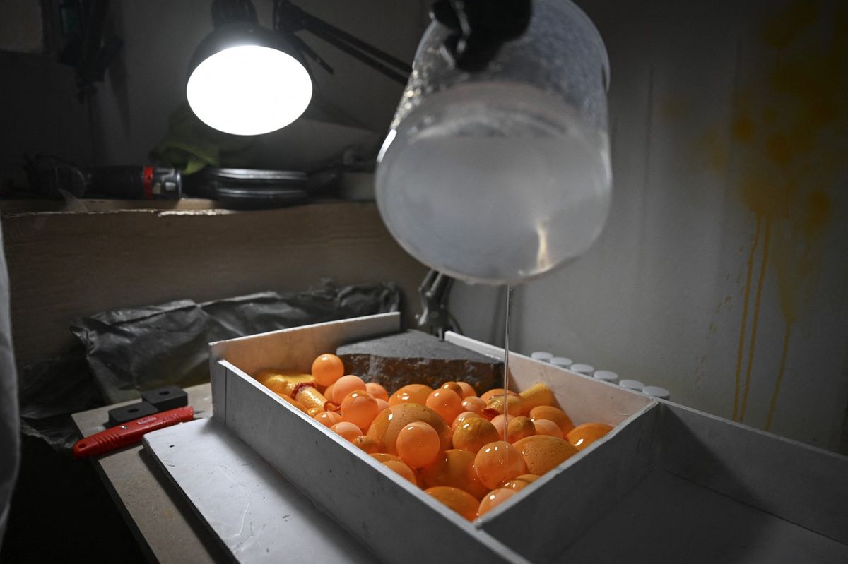 Následně míčky umělec zalije pryskyřicí.