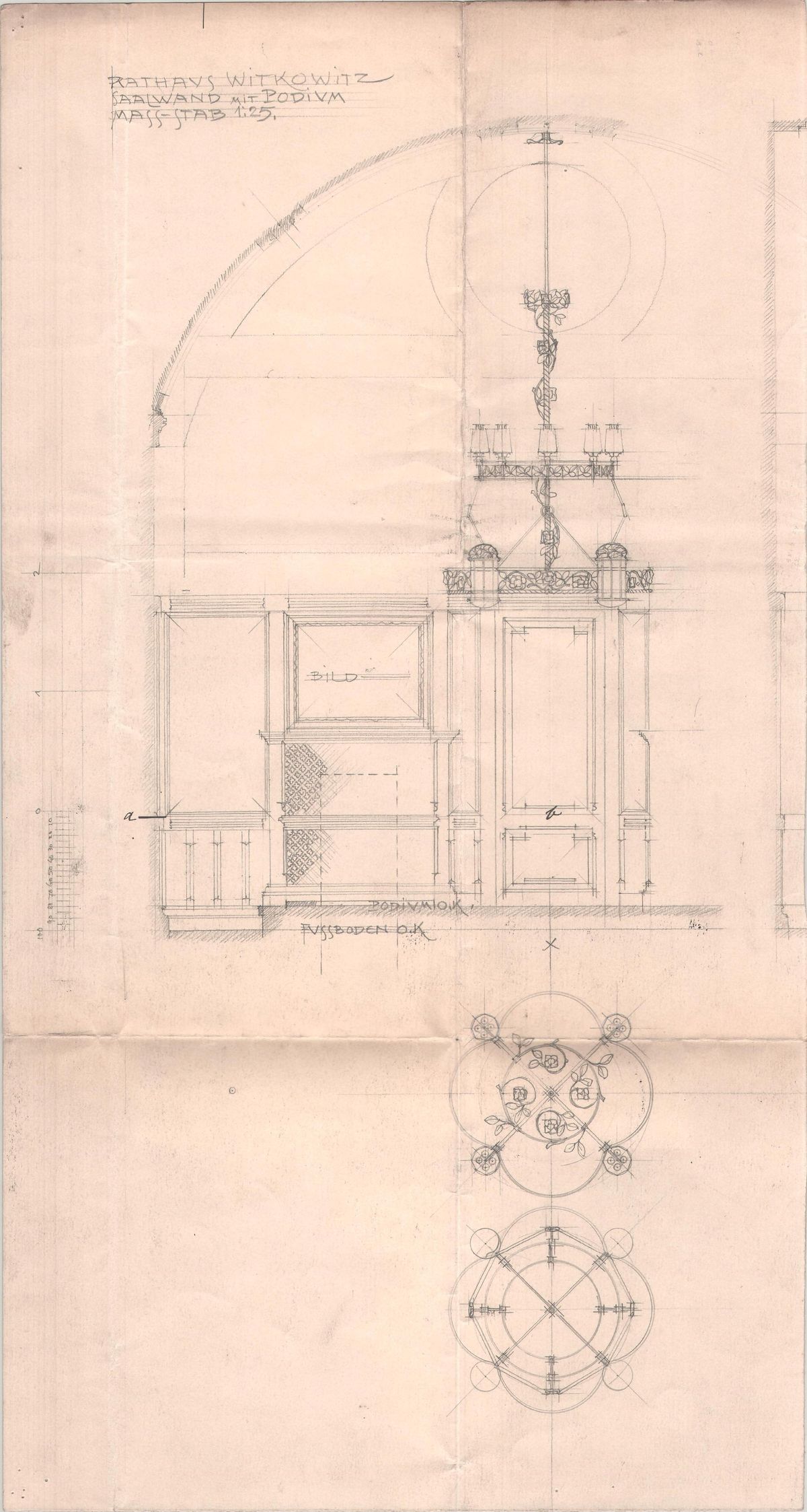 Návrh původních lustrů od vídeňského architekta Maxe von Ferstla, který byl objeven v archivu vítkovické radnice.