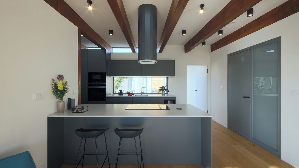 Šikovně je v domě využito tepelné čerpadlo vzduch/voda, které v zimě přes podlahové vytápění ohřívá interiér, zatímco v létě jej chladí prostřednictvím rozvodů ve stropě. Díky venkovním žaluziím je pro majitele snadné dům chladit i v letních tropických dnech.