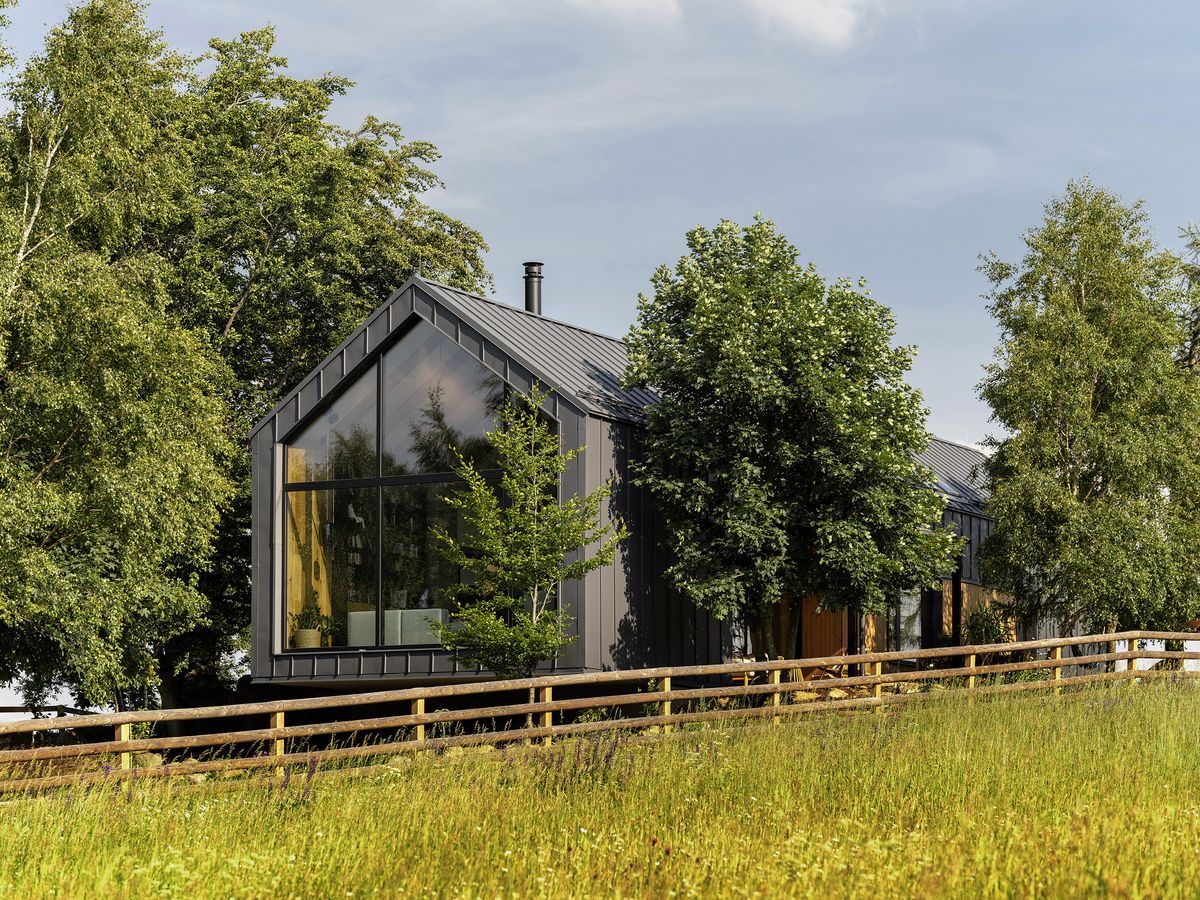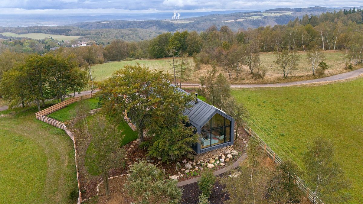 Nad vesnicí, cestou k lesu, stála původně chata schovaná u cesty v remízku. Remízky tu protínají horské louky a rozdělují je vrstevnicově na jednotlivé pruhy. A právě toto místo, s půvabnými výhledy všemi směry, zaujalo investora a architekta inspirovalo ke stvoření domu uprostřed přírody.