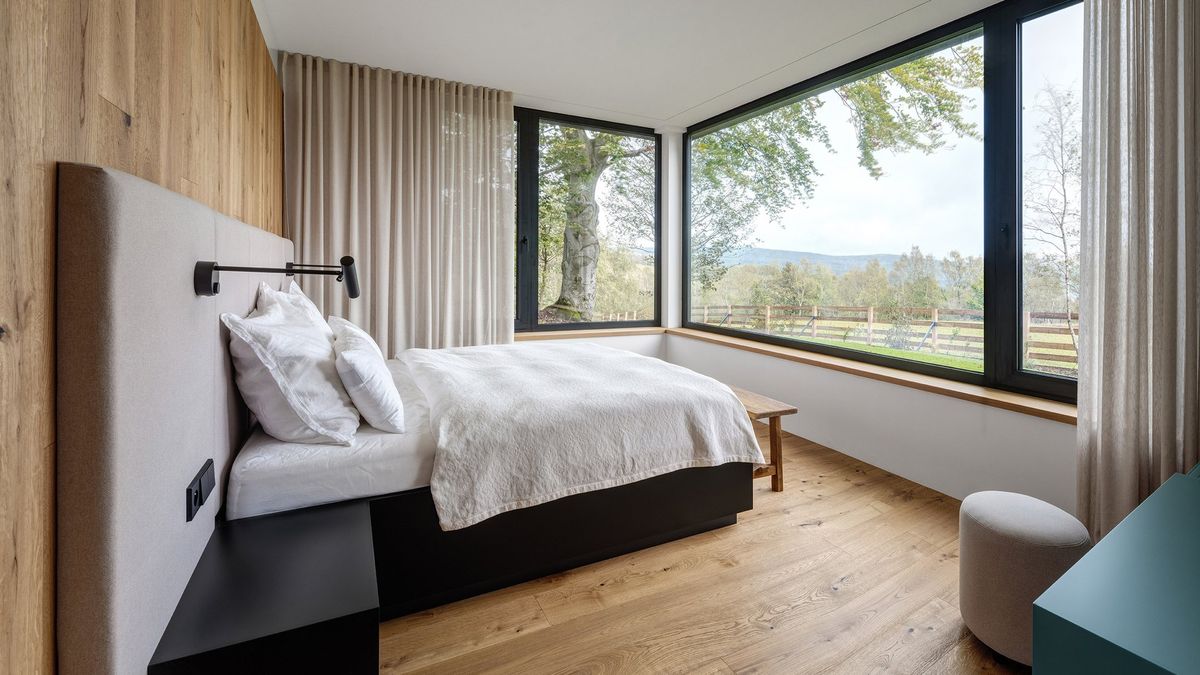 Pro návrh interiéru pak investor požádal o spolupráci i architekty ze studia Čtyři stěny, kteří vymysleli také zařízení domu, které navazuje na tradiční architekturu a zároveň je vyrobeno z udržitelných materiálů, šetrných k životnímu prostředí.