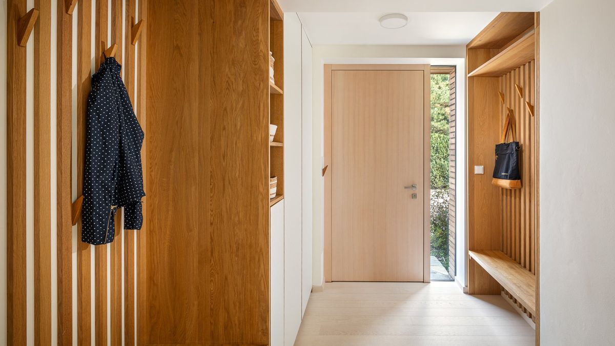 Nové místnosti byly navrženy v duchu čistoty a jednoduchosti s důrazem na dřevěné prvky, které se prolínají celým domem a vytvářejí pocit harmonického propojení staré části stavby s novou.