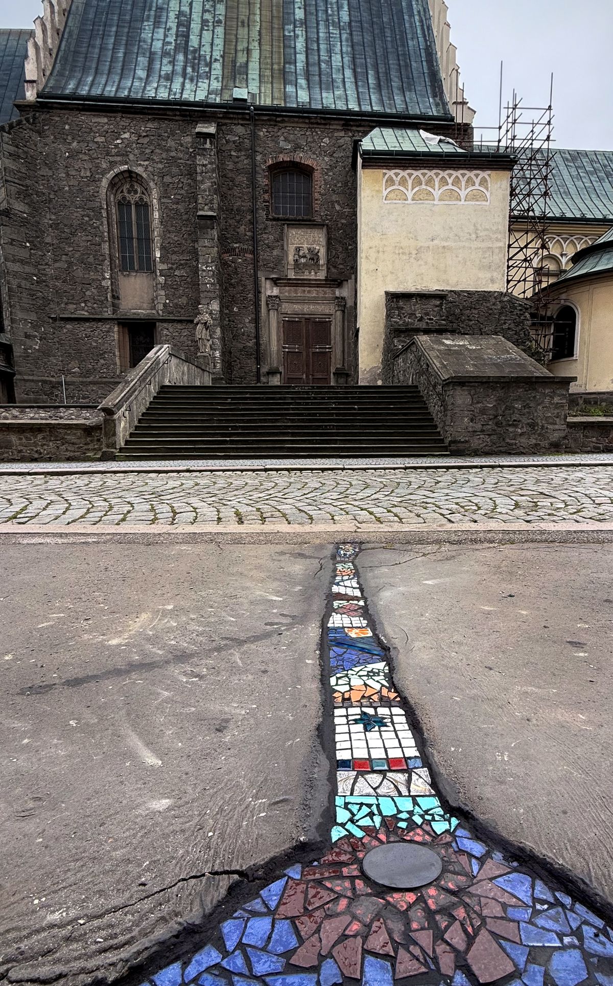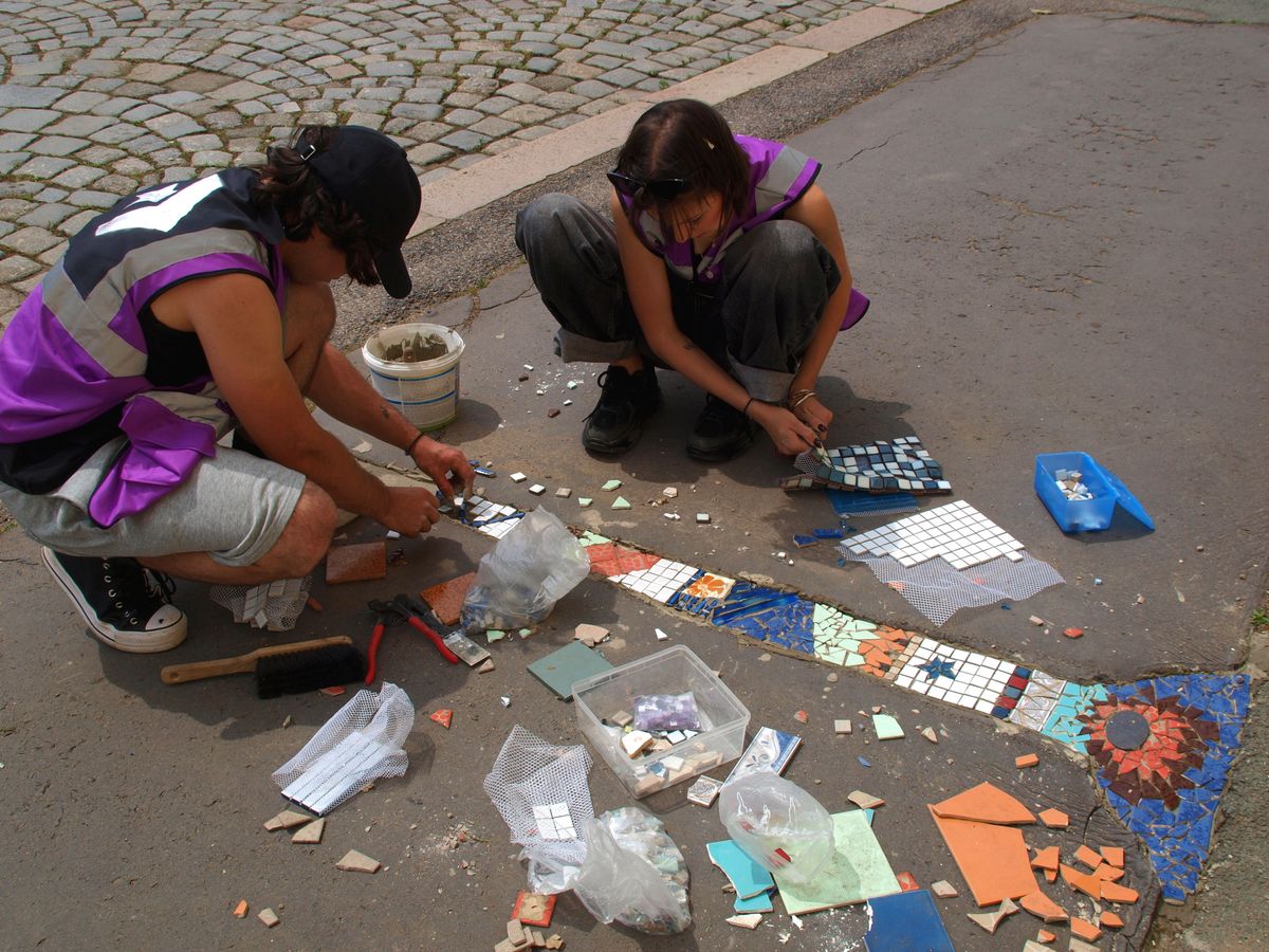 Tvorba mozaiky na Kostelní ulici v Pardubicích