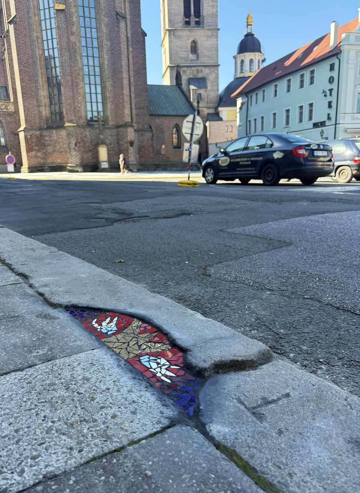 Další mozaika, kterou Matěj Krajíček vytvořil z děravého chodníku v Ostravě.