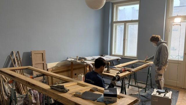 Na obnově prvorepublikového nábytku z 30. let minulého století se pracuje už od roku 2022. Městská část Brno-střed, v jejíž správě se byt nachází, tehdy uzavřela spolupráci s Vyšší odbornou školou restaurátorskou na zpracování průzkumu i budoucího restaurování. Z odborných dílen se práce nyní přesunuly přímo do bytu, kde od začátku minulého týdne studenti ošetřený mobiliář skládají na původní místo.