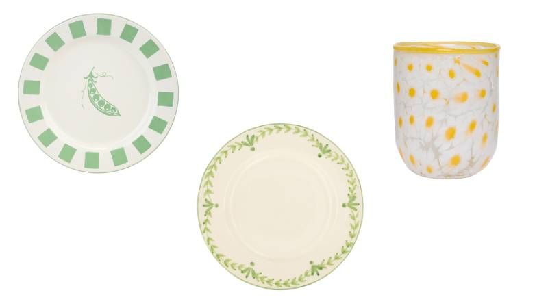 Talíře a sklenice mohou mít barvu čerstvých lusků nebo narcisů.