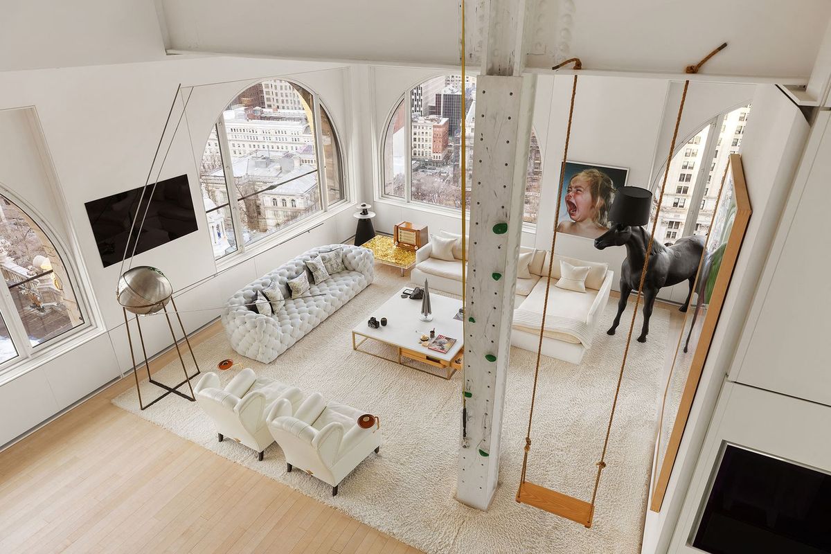 Penthouse v prestižní čtvrti Tribeca zabírá vršek historické budovy na adrese 150 Nassau Street a už na první pohled je jasné, že jeho interiér vznikal v duchu hesla „víc je prostě víc“. Přestože nabízí impozantní výhledy na dolní Manhattan a velkorysý prostor, hlavní roli si pro sebe ukradl prvek, který by člověk čekal spíš v zábavním parku než v luxusní rezidenci.