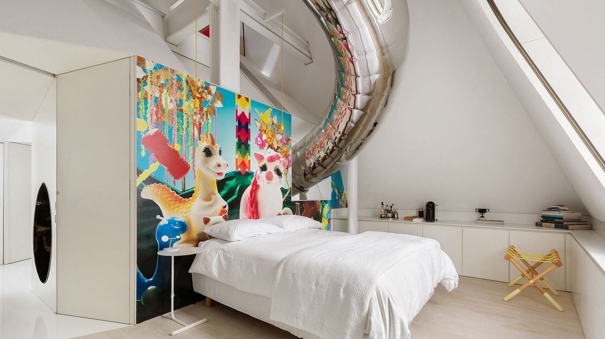 A právě v tom je možná největší kouzlo takzvaného Sky House. V době, kdy se luxusní byty často předhánějí v minimalismu a sterilní dokonalosti, přichází něco, co si dovolí být trochu bláznivé. Protože ruku na srdce – kolik lidí může říct, že má doma vlastní třípatrový tobogán, který vypadá jako ukradený z tajného programu NASA?