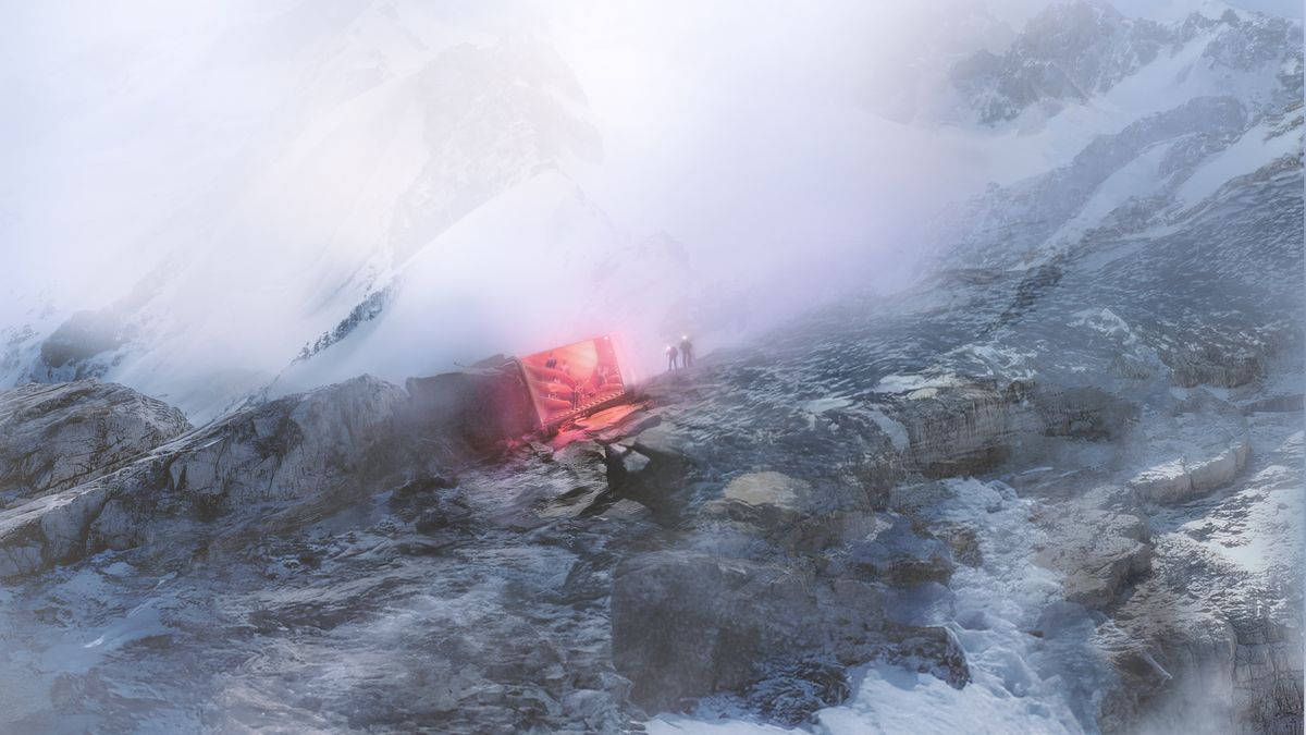Zajímavostí stavby je už jenom její vznik. Designéři nejprve pořídili 3D sken skaliska a jeho okolí na blíže nespecifikovaném místě na hřebenech Alp. Poté teprve začali navrhovat podobu samotného přístřešku. Ten vychází z tvarů okolních vrcholů a skal, a zároveň mezi ně zcela přirozeně zapadá. Výchozím materiálem budou CLT panely a kov.