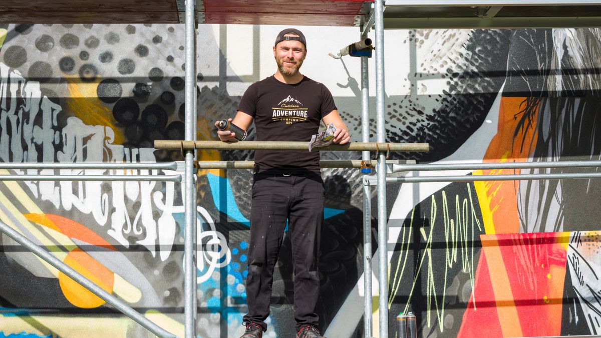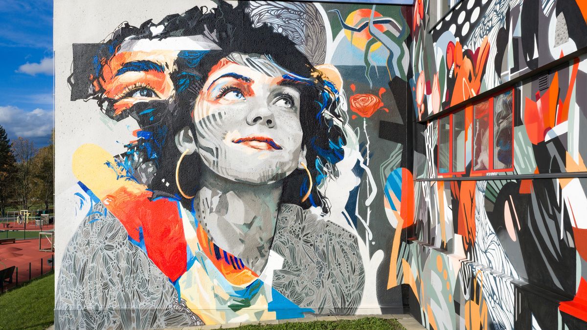 Jeho nový mural je inspirován prostředím školy a sportovního areálu, u kterého vznikl. Ukazuje mládež, vzdělání, energii, sportování, pozitivní pohled na svět i propojení s přírodou.